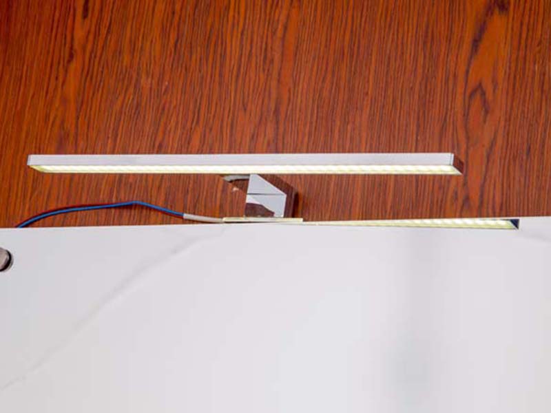 Odbicie światła: Wbudowane w chrom lampy lustrzane LED mogą powodować odblaski lub nadmierne odbicia światła ze względu na ich wysoki współczynnik odbicia, podczas gdy satynowe lampy lustrzane mogą lepiej rozpraszać światło i redukować odblaski.
